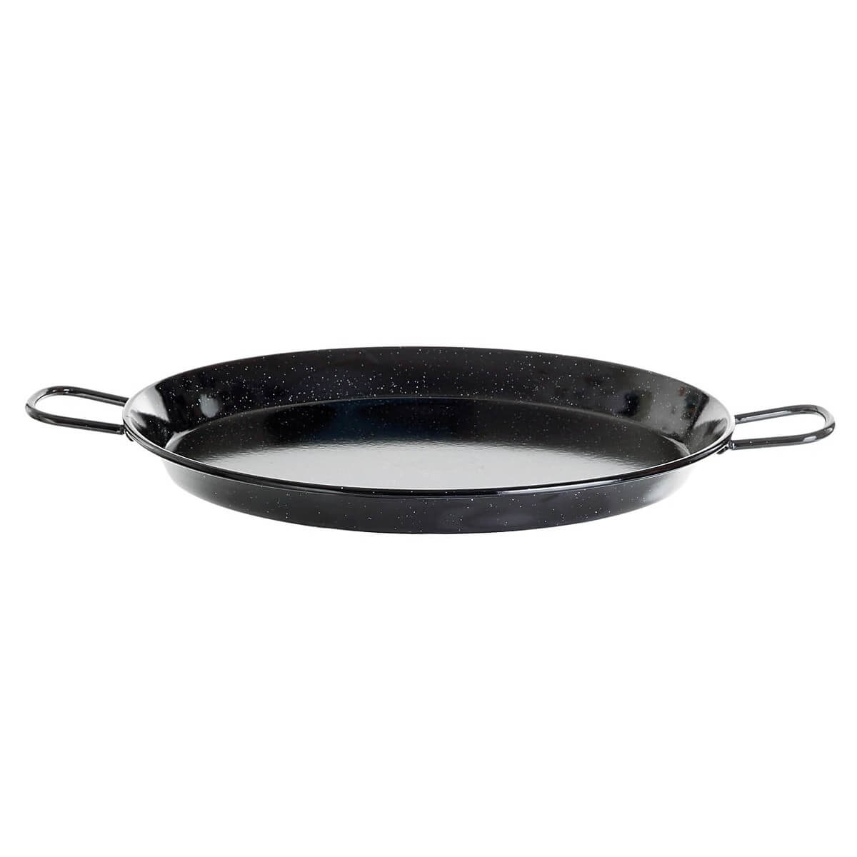 Kvalitní pánev se smaltovaným povrchem navržena speciálně pro přípravu paella pokrmů. Tato robustní pánev je vyrobena z kvalitní oceli, která je následně keramicky povrchově upravena tzv. smaltování. Oproti tradiční pánvi bez povrchové úpravy je údržba smaltované pánve jednodušší a lze ji navíc umýt v myčce. Dno pánve je speciálně raženo tak, aby se zamezilo jakékoli deformaci způsobené teplem. Snadnou manipulaci zajišťují dvě černé madla. Pánev je vhodná pro přípravu pokrmů na otevřeném ohni nebo na "plynu".